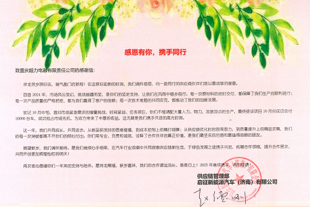 來自啟征新能源汽車(濟南)有限公司的感謝信